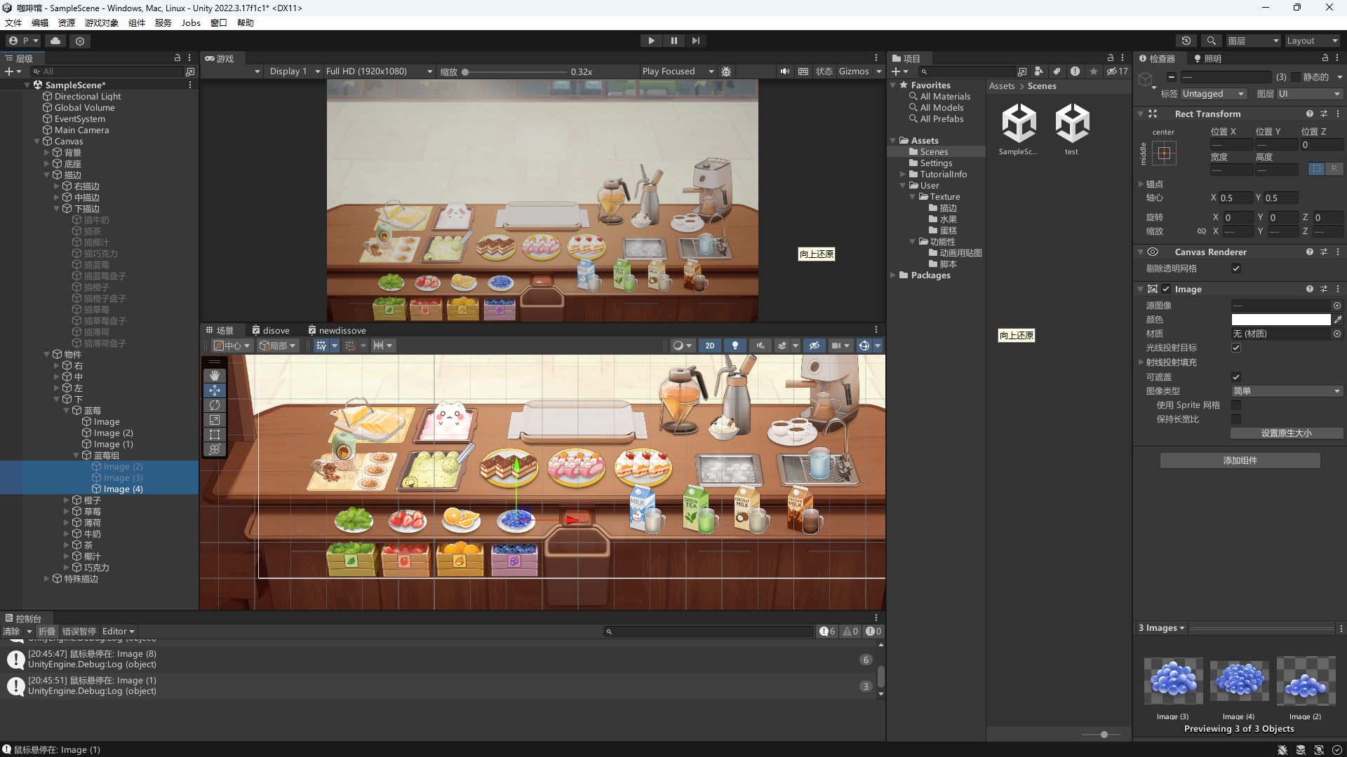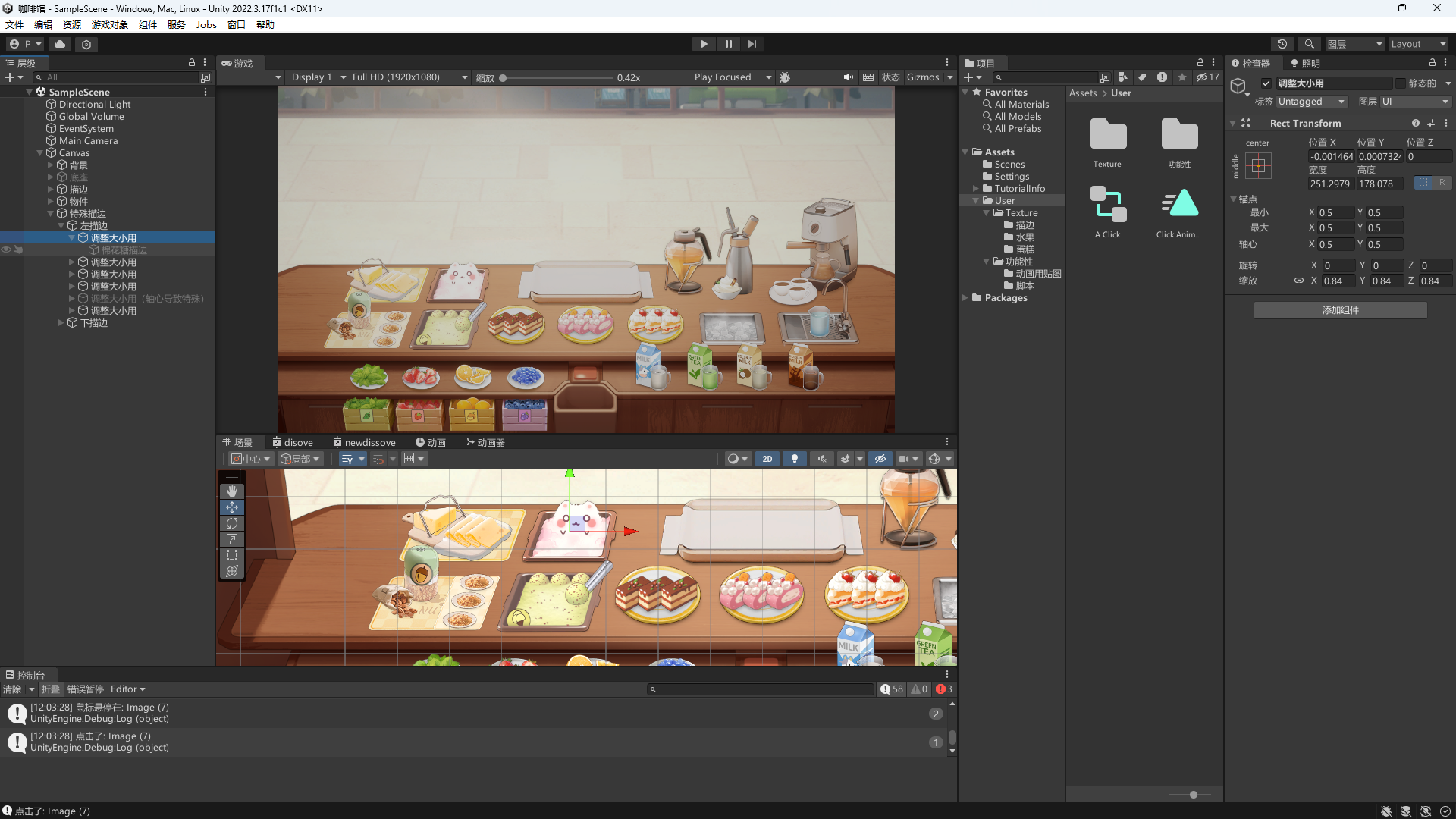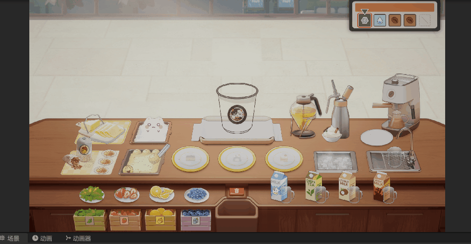• 这里忘了咖啡也比较特殊,当咖啡在二三层时,需要额外激活一段小动画,所以也要单独处理下,不过由于忘了,所以没加