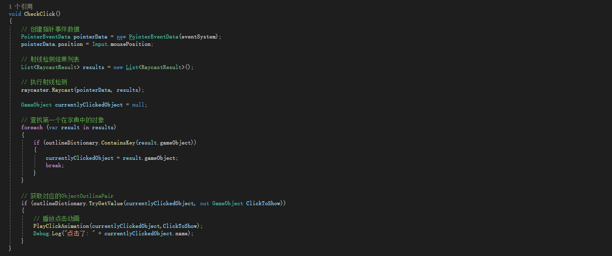 • 明天再做,正在思考要不要塞到描边里,毕竟已经在描边脚本中获取了那些可被点击的物体了。