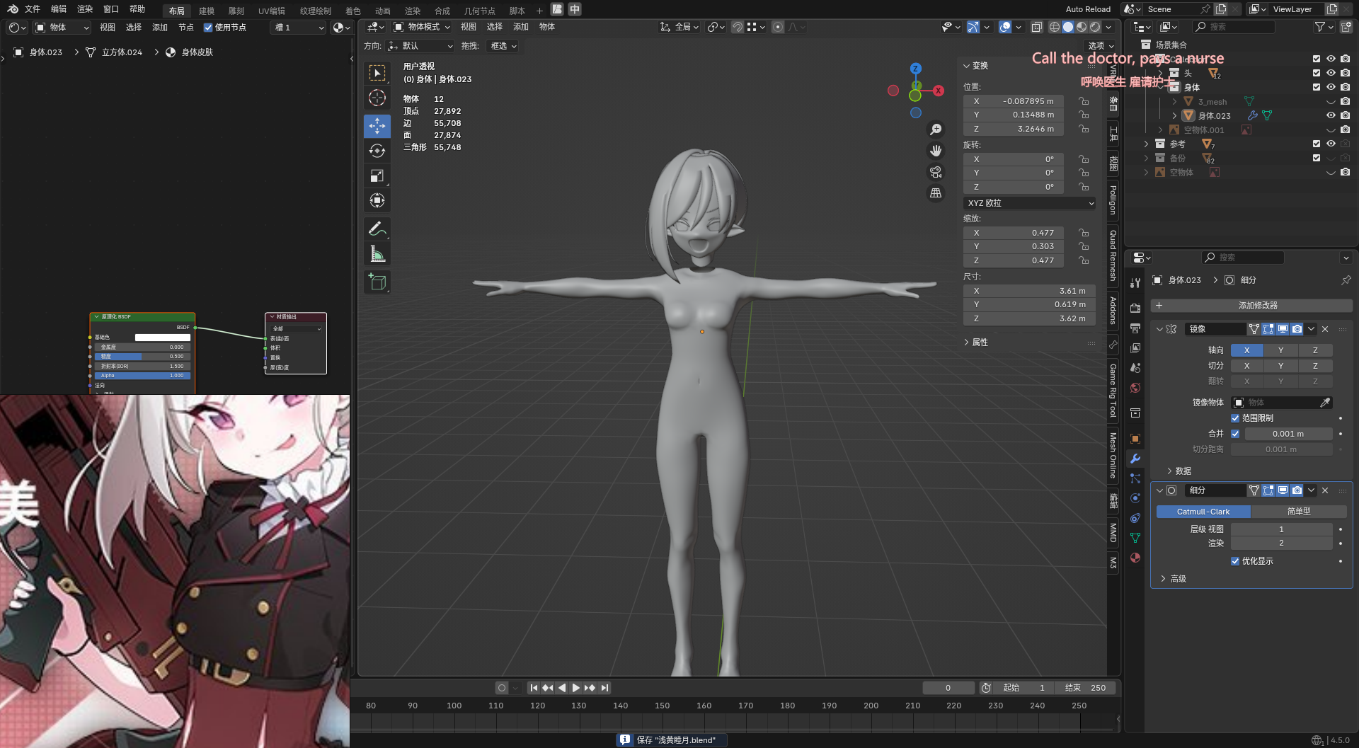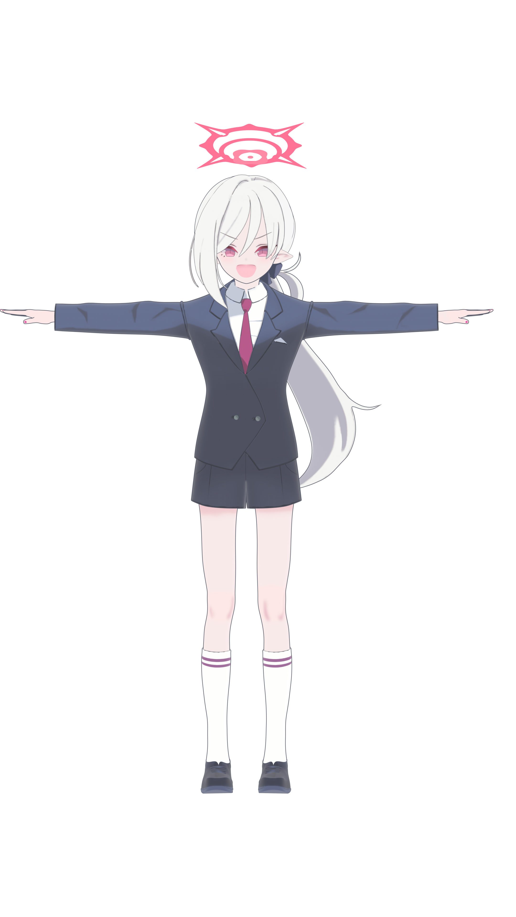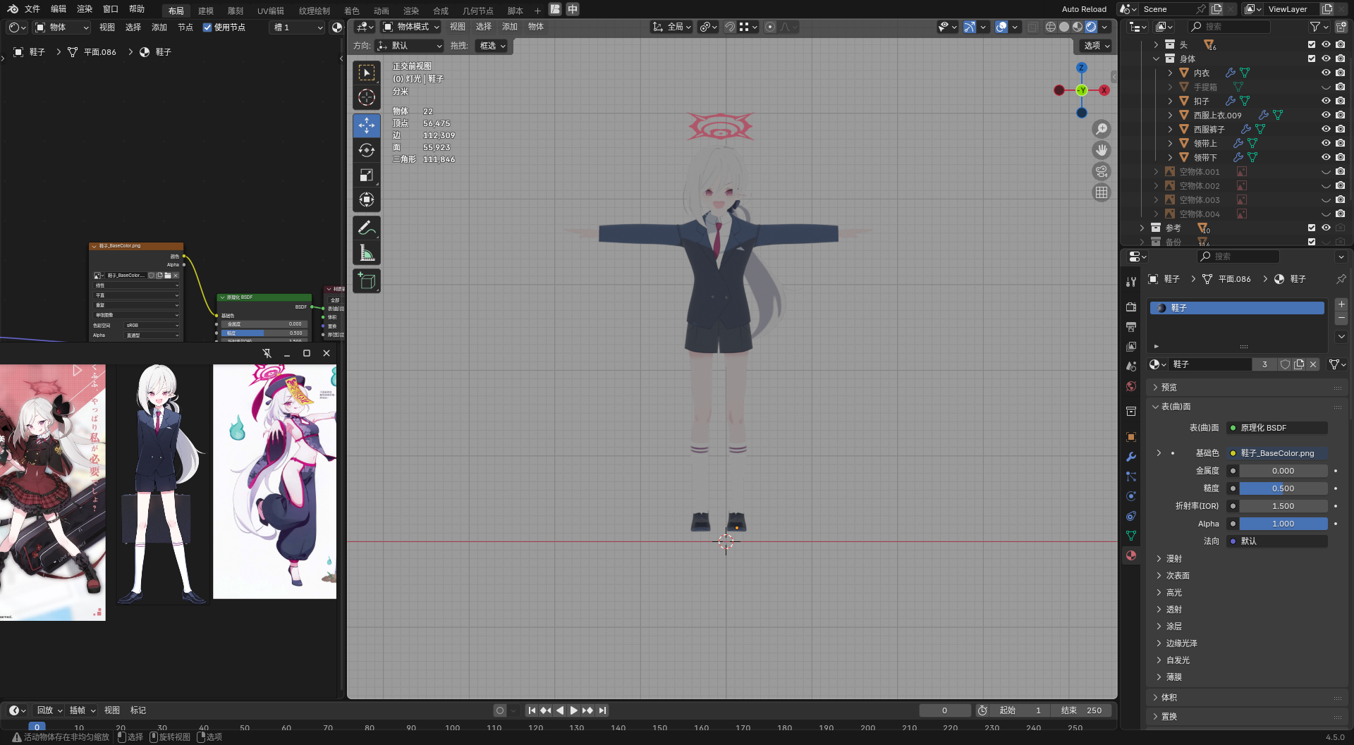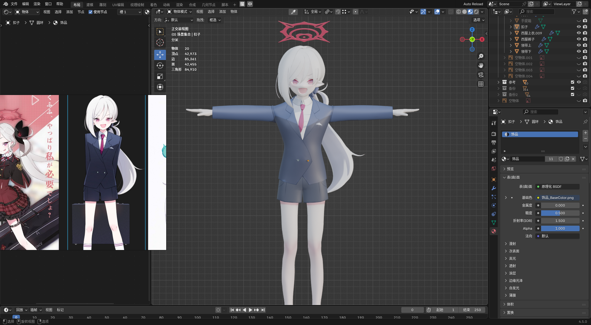 • 先以第一个图为基础,做一个脸模出来,毕竟这张图的脸还算正。这张图嘴是张开的,而且幅度很大,那后面的形态键应该怎么做呢(问题暂留)