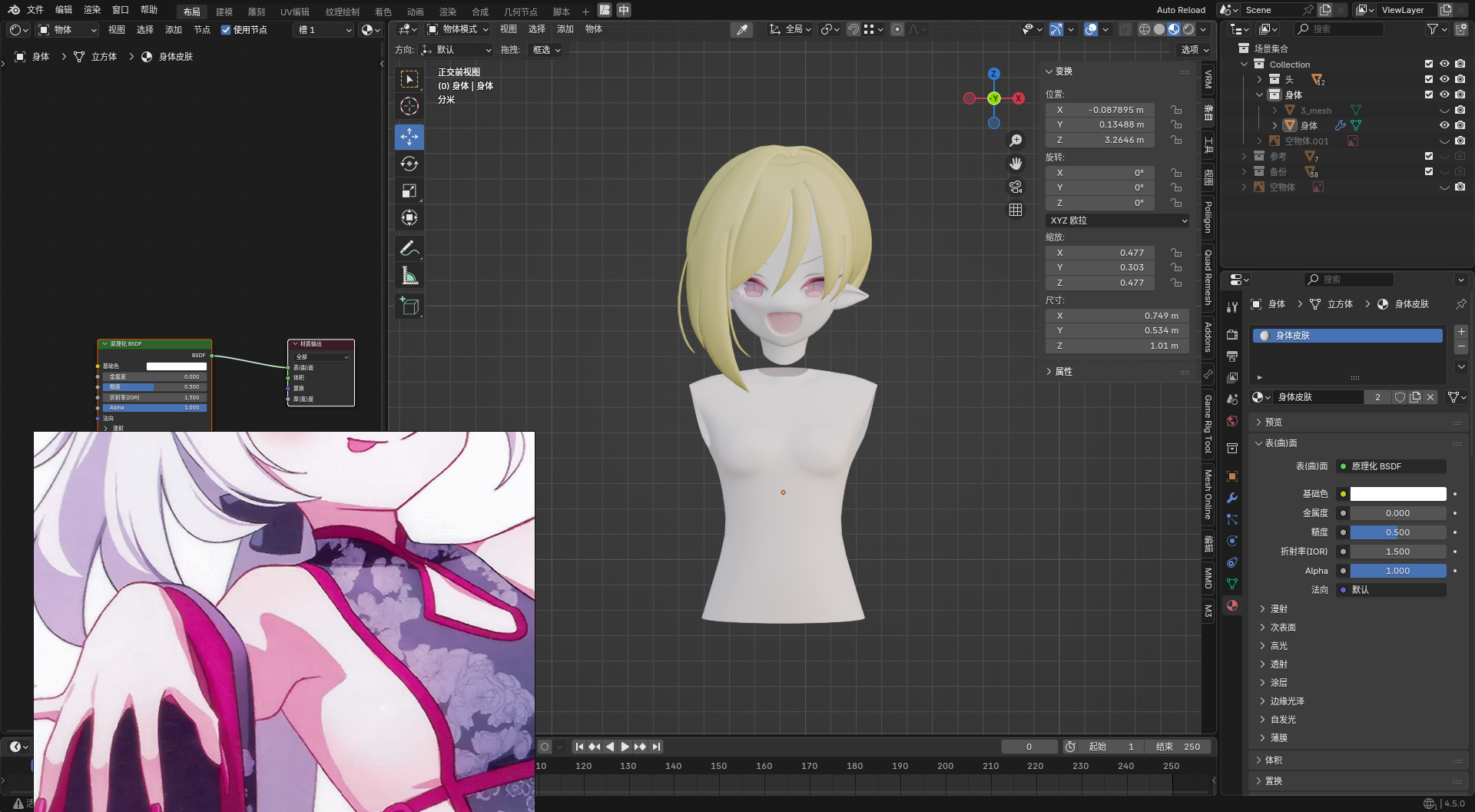 • 裸模没有三视图更是折磨。。用其他人的当作参考自己调整(不能直接用其他人的,毕竟都已经应用了修改器,而且大部分和这体型不一样)。