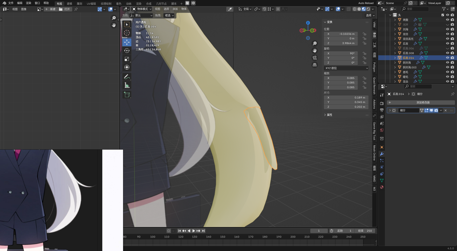 • 头发还是挺有挑战的,我的是面片法,不一定全适合。