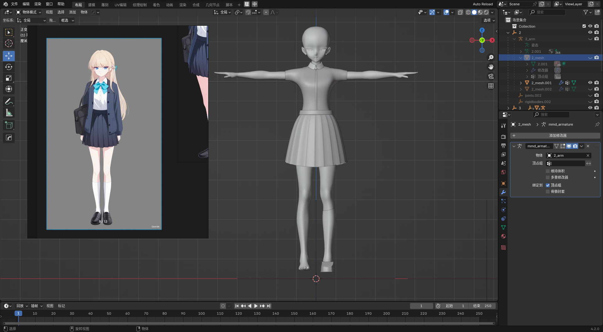 • 由于比较懒,所以没有做衣服的骨骼绑定,后期有空再来补充吧,并且摆出想要的 pose,她真的好好看。