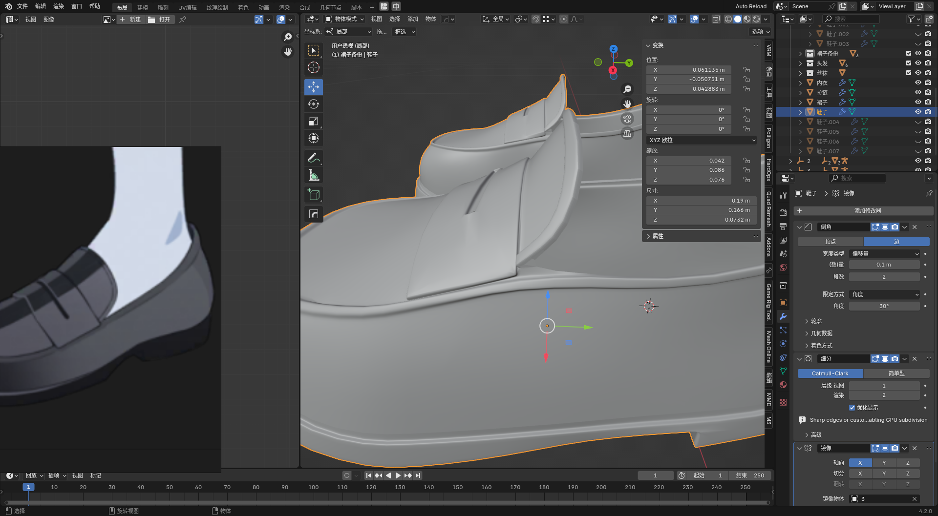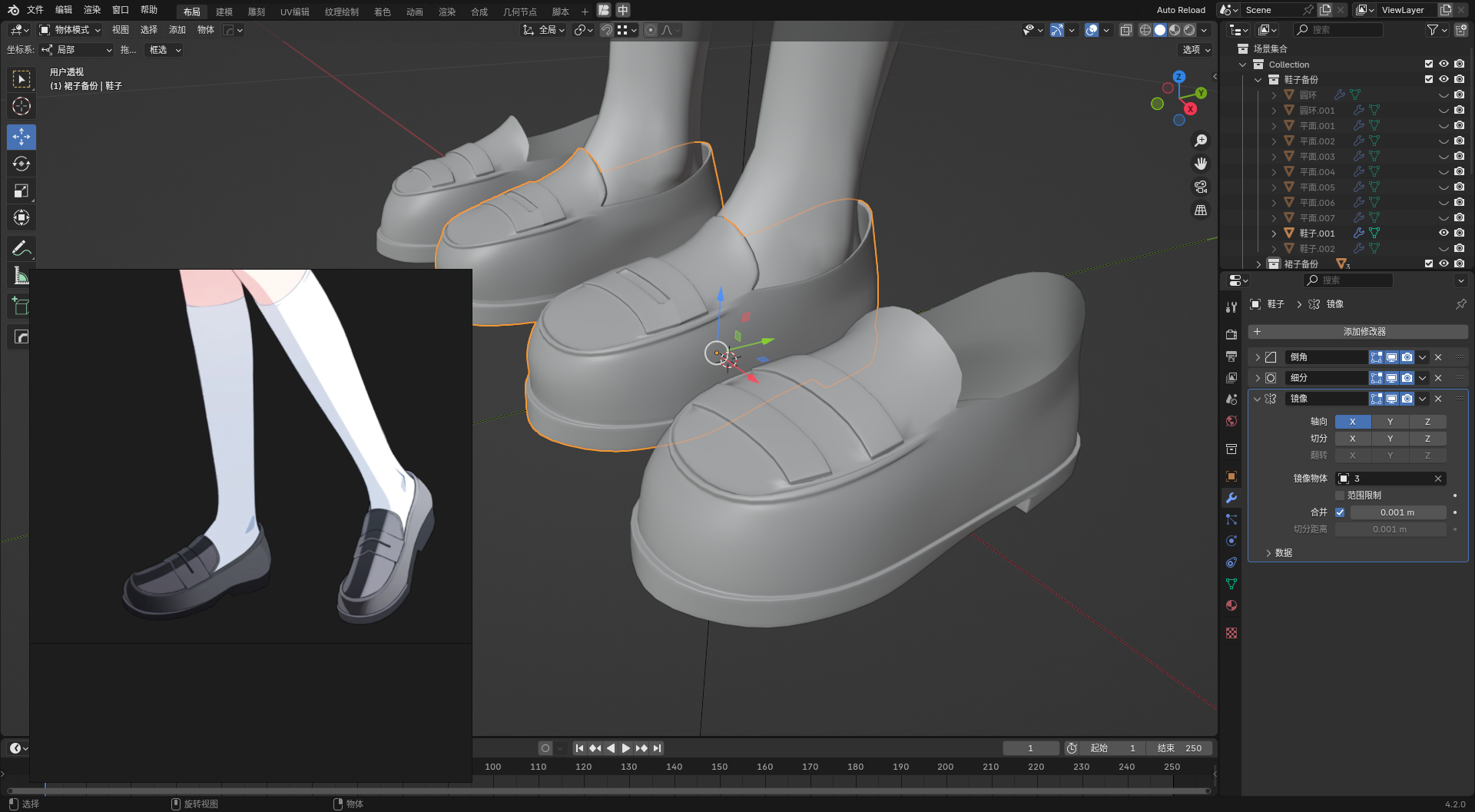 • 内衣和百褶裙挺好做的,直接正方体细分就可以了,百褶裙网上有教程,40 顶点的圆环可以调整出来,鞋子模型有点讲究,因为刚开始跟的二比豆包的图,导致建错了模型,后期又费力改了回来